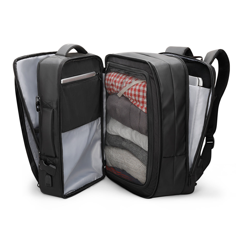Lo zaino AVIATOR EXPANDABLE è progettato per offrire spazio di archiviazione extra quando ne hai bisogno, il che lo rende un'ottima scelta per viaggiatori, studenti e pendolari che hanno bisogno di trasportare una varietà di oggetti. Uno zaino per laptop di grande capacità è progettato non solo per trasportare il tuo laptop da 17", ma anche altri oggetti essenziali come libri, quaderni e altri gadget.
